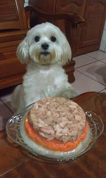 Ruby都容不住想偷吃看看~~下次生日打算做狗凍再插根蠟燭應該就可以慶祝了