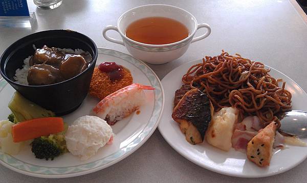 這家餐廳採自助式 有咖哩飯.炒麵.壽司.冰淇淋.diy鬆餅機.可樂餅及其他熱食