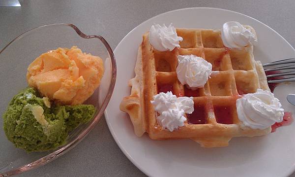 在這吃的很開心 對外可以看到海景還有鬆餅機可以自已製作一份專屬自已的鬆餅