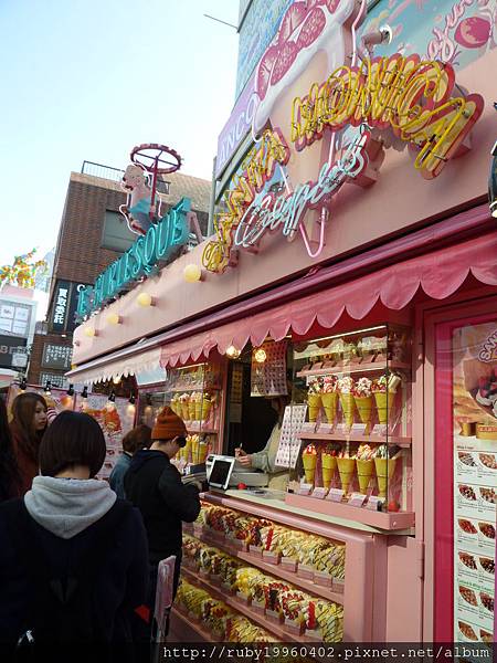 車站一出來過馬路就是原宿竹下通了~很熱鬧 也不少外國人及穿制服的學生