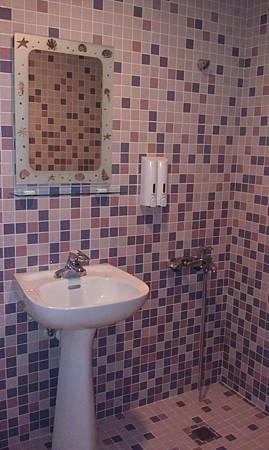 浴室就鐵貼滿馬賽克磚 簡單又乾淨 缺點沒有浴缸 不過價格便宜不能要求太多