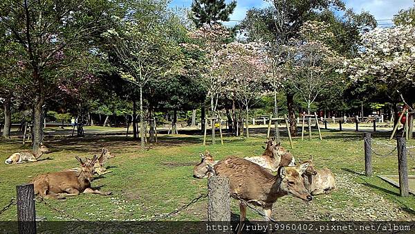 4/21 當天只剩幾顆櫻花樹 有櫻花 如果早點來櫻花更多 鹿就在下面休息 畫面真好~