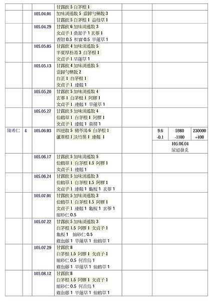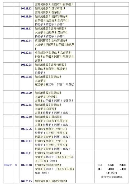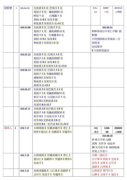 104.03.19~104.07.17 劉醇鑒 看診3個月