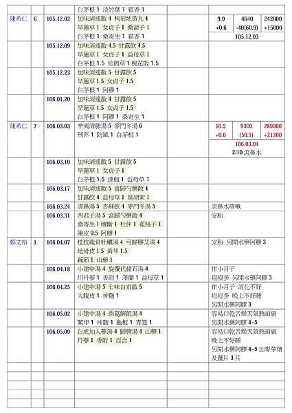99.3月~104.7月 中藥吃了6年 把我從原本被西醫判必須做骨髓移植的患者到至今西醫說我已經算是快痊癒 我真的是奇蹟